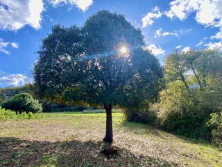 Le site est porté par l’histoire de Lydia, accueillante du stage. Suite à une épreuve de vie, elle avait perdu l’odorat. De passage en Corse, elle retrouve toutes ses capacités sensorielles. Contre toute attente, elle devient propriétaire d’un terrain agricole, arboré de chênes verts, d’arbousiers et traversé par un ruisseau à Alata. Elle crée l’association Esprit de Cœur. Le projet est un appel intérieur, né d’un lien ancien, presque instinctif. Il s’agit d’habiter et d’écouter la terre comme on écoute un aîné. Un lieu où chaque construction, chaque atelier, chaque geste a pour intention profonde : honorer la Terre-Mère. Dans un esprit de partage et de transmission, en lien avec les locaux qui cherchent à préserver leur terre, plusieurs axes sont programmés: culture de plantes médicinales et aromatiques, en biodynamie, création d’un jardin-école, construction d’une grange et d’un séchoir.